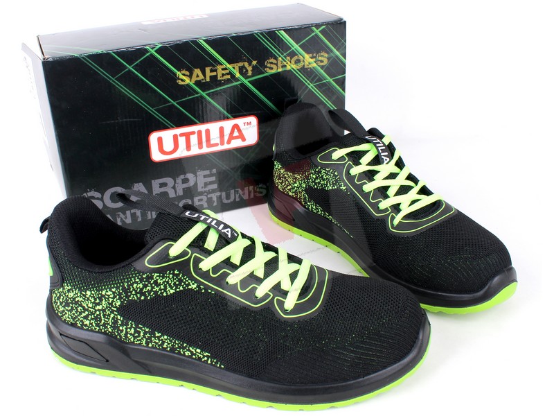 Utilia SCARPE ANTINFORTUNISTICA BASSE S1PS FO SR ANTHEA IN TESSUTO Col. Nero e verde lime Mis. 38