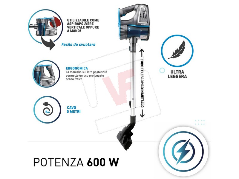 60365 | Zephir SCOPA ASPIRAPOLVERE CICLONICA 2 in1 ''ZHV185'' 600 W ||Zephir |