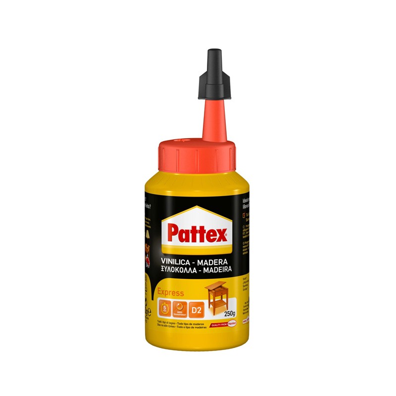 Vinyl acetate adhesive ideal for bonding to all types of wood and derivatives, plastic laminates, felt, cork and expanded materials. Holds parts in place in 5 minutes, can be worked and sanded. Transparent colour.