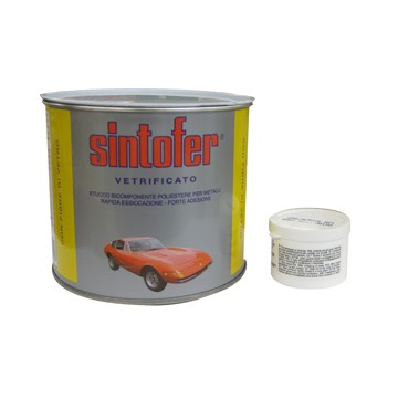 Body and nautical filler, two-component polyester with incorporated glass fibres, rapid drying and strong adhesion, ideal for reinforcing the reconstruction of missing parts, resistant to mechanical stress.