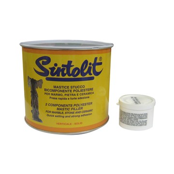 Solid putty-putty for marble. Two-component polyester. Also suitable for vertical position applications. Thixotropic structure and notable softness which facilitates application.