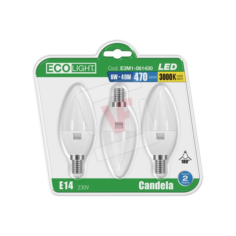 Ecolight LED CANDLE LAMP E14 3 PCS. cold light 6 W