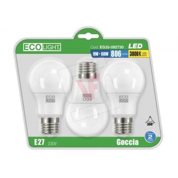 Ecolight LED DROP LAMP E27 3 PCS. warm light 15 W