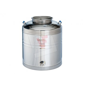 In 18/10 stainless steel, cap with silicone gasket, vent valve on the lid, provision for tap, butt welded.