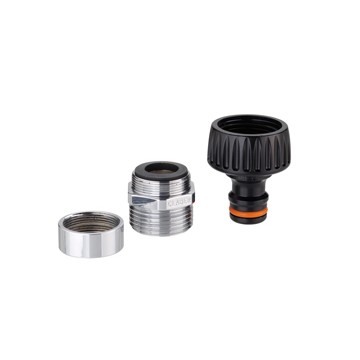 In polypropylene, for taps with mm thread. 22 M or mm. 24 F, allows you to connect a hose from the kitchen or bathroom, complete with aerator filter and metal threaded adapter.
