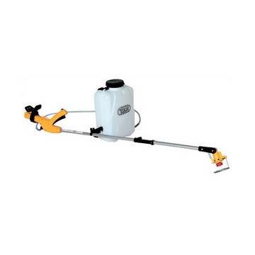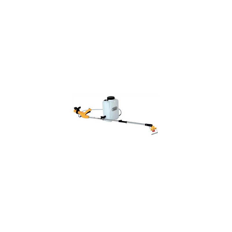 To be used with herbicide diluted in low volume water. Polyethylene tank, drops Ø 250 micron, working angle adjustment, resealable tube, diffuser with protection, operation with 2 1.5 V batteries, autonomy of approximately 40 hours, coverage area Ø cm. 110÷150.
