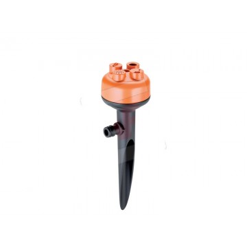 Mounted on a stable stake, uniform irrigation and reduced water consumption, 4 different jets (shower, blade, 360°, 180°), max irrigated surface m2. 64.