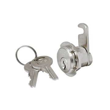 In nickel-plated brass, 90° clockwise rotation, key removable in the closed position only, 2 keys.