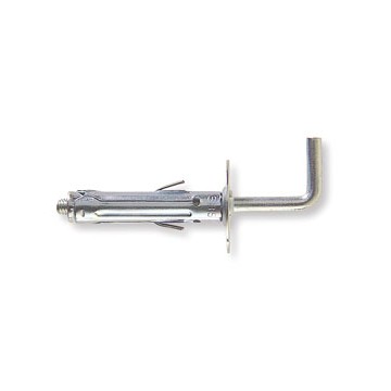 In steel, with anti-rotation fins, long hook. For mounting on building materials.