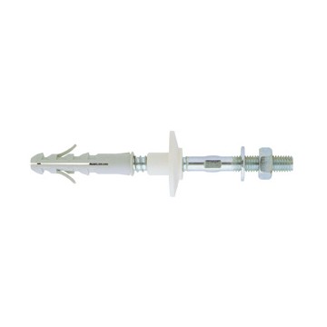 For wall-mounted washbasins and sanitary ware. Fixing consisting of dowel mm. 12x60, nylon bushing, anti-rotation fins, M10x120 screw and white galvanized nut. In sachets of 2 pcs.