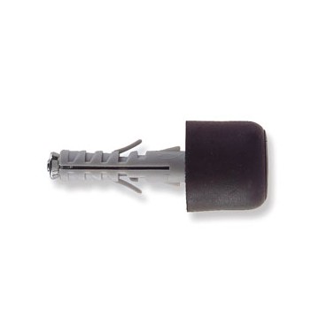 In nylon, with anti-rotation fins and external profile, black rubber door stops. For light fixings.