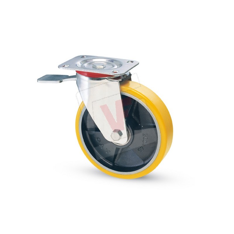 Avo SWIVEL WHEEL FOR POLYURETHANE TROLLEYS+BRAKE art.24ANT mm. 80-plate 100x85 mm