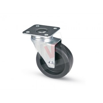 In synthetic rubber flanged in shockproof plastic material, support in zinc-chromed pressed steel rotating on a double crown of spheres.