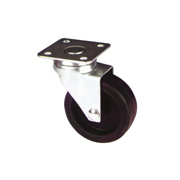 In synthetic rubber flanged in shock-proof plastic material, support in zinc-chromed pressed steel rotating on a double crown of spheres.