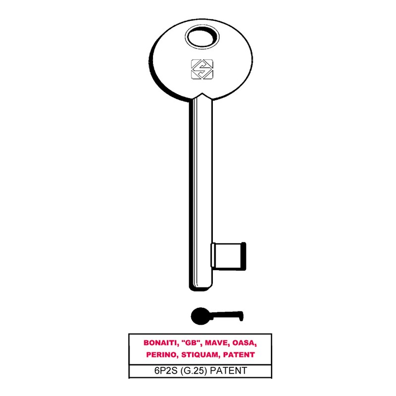 26622 | Silca BIT KEY 6P2S (G.VAZ 0) PATENT BONAITI polished brass ||Silca |