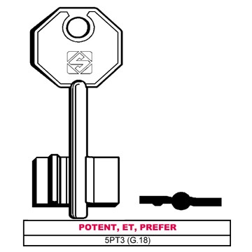 10433 | Silca DOUBLE BITTED KEY 5PT3 (G. VAS 5) POTENT, ET, PREFER ||Silca |