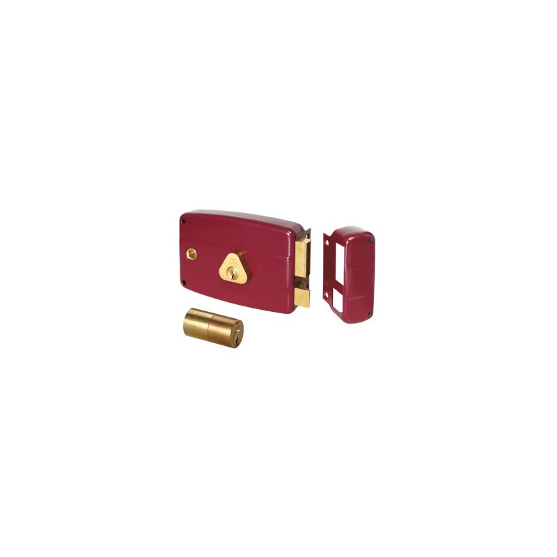 Lock to be applied. Brass latch and deadbolt, pass-through handle square, 2 throws, internal cylinder, 3 keys, amaranth red painted.