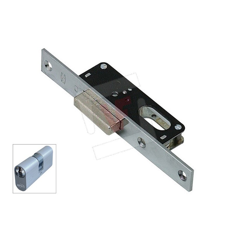 Lock for uprights. 1 throw, deadbolt, cylinder, 3 keys, box mm. 26x90.