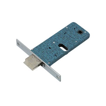 Band lock. 2 throws, latch, burnished steel handle square, box mm. 153x64.