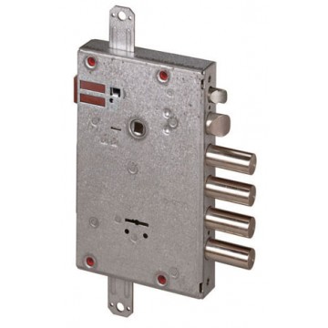 Electric lock to be applied with double bit. 4 throws and electronically recallable self-locking latch, predisposition for additional locks, 3 long keys, voltage 12 V approx.