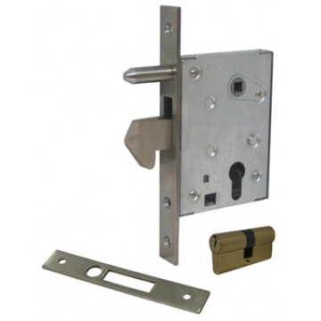Mortise hook lock for sliding doors and gates. 1 throw and a half, with pin and counterplate, with cylinder, tropicalized steel front, 3 keys, box mm. 100x130.