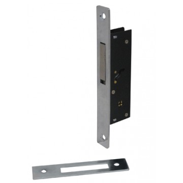 Mortise lock. Swinging deadbolt, counterplate, nickel-plated steel front, 2 pin keys, box mm. 36.2x104.