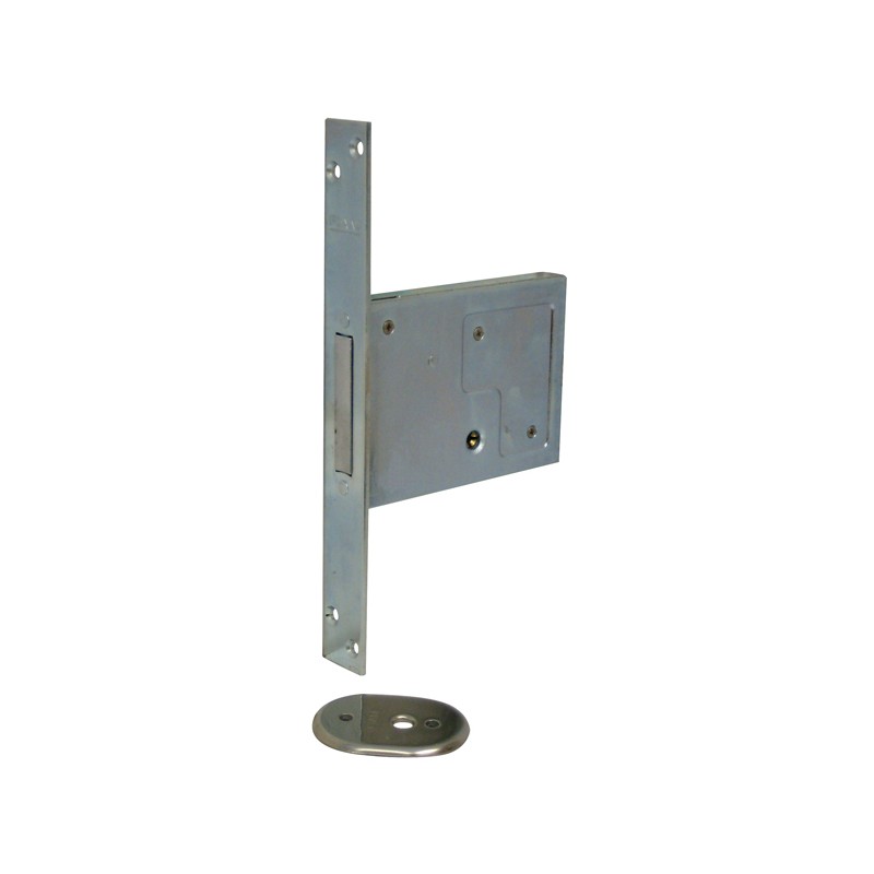 Mortise lock. 4 throws, with stud, galvanized steel front, 2 pin keys, mm boxes. 104/114x83.
