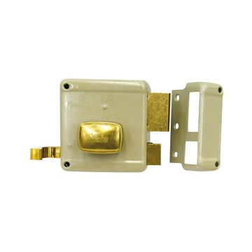 Lock to be applied. 2 throws, detached external cylinder, closure with internal knob, latch and deadbolt, 3 keys.