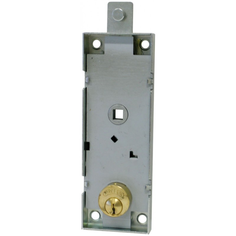 A top side closure. Round brass cylinder, 2 keys, galvanized box.