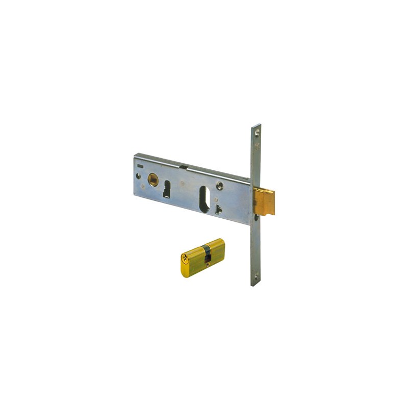 Mortise lock for low bands. 2 throws and latchbolt, with cylinder, 3 keys, galvanized, boxes mm. 165x44.