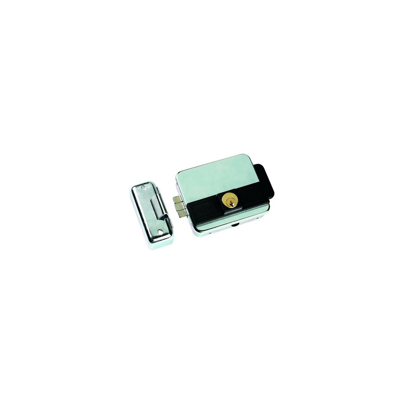 Electric lock for doors and gates. Self-locking latch, fixed cylinder, ambidextrous, height-adjustable striker, single backset adjustable from mm. 50 to 70, 3 keys, galvanized. Voltage 8/12 V approx.