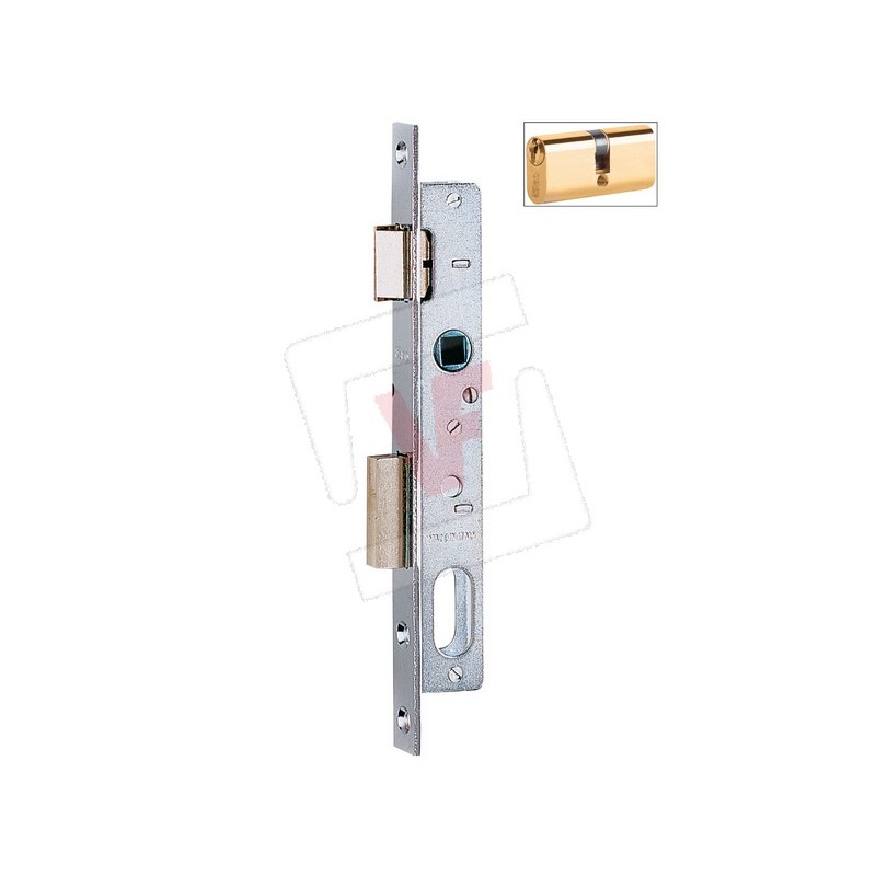 Mortise lock for open box uprights. 1 throw and latch, with cylinder, chromed front, 3 keys, box mm. 26x162.