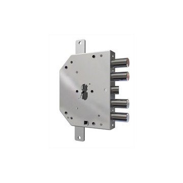 Lock to be applied. 2 throws, triple locking with latch operated both with key and with handle square, 3 locking points, without rods, galvanized, box mm. 130x164. For European cylinder.