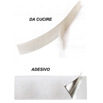 Made of polyester, ideal for fabrics (sewing type) and rigid materials (adhesive type), usable thousands of times without loss of adhesion. Roll mm. 20x50 m, col. white.