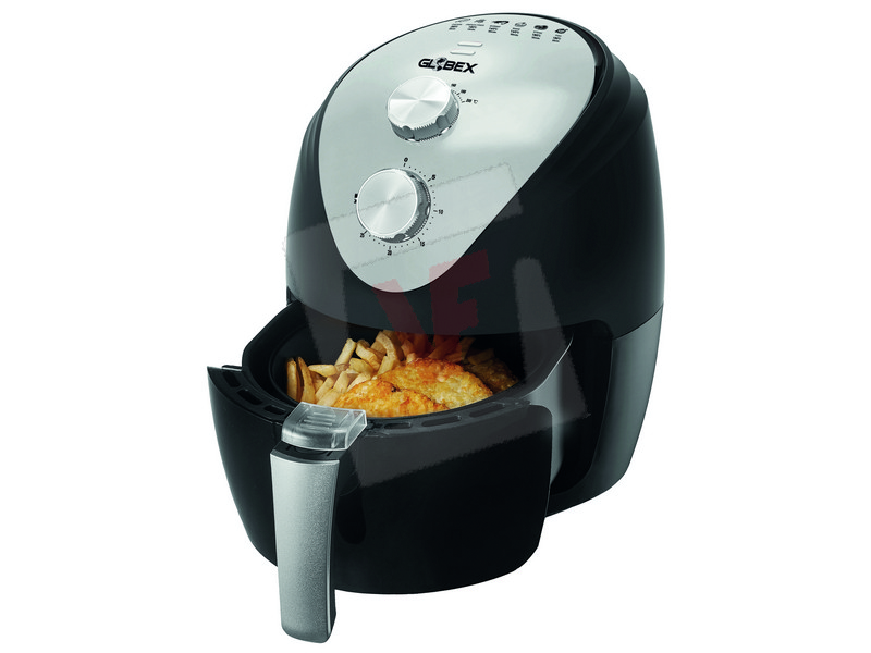Basket capacity lt. 2.5, ideal for frying vegetables, meat and fish. External container with handle, non-stick, removable and washable basket, adjustable thermostat from 80° C to 200° C, 30 minute timer with auto-off, indicator lights, non-slip rubber pads, cm. 31x26.5x31 h.