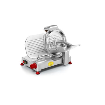 Aluminum structure, single-phase asynchronous motor, cutting thickness adjustment mm. 0÷15, tempered blade Ø mm. 250, standard sharpener.
