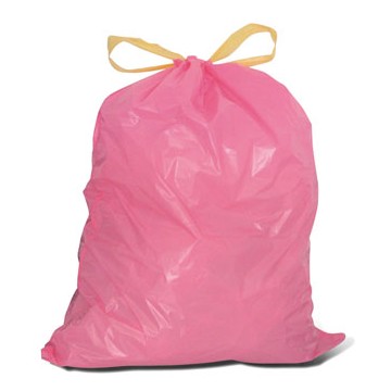 Low density polyethylene bag with handles. With side seam, anti-drip, col. pink, roll of 12 bags.