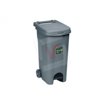 Made of plastic, with pedal, bag holder ring, rear handle and wheels, ideal for separate waste collection.