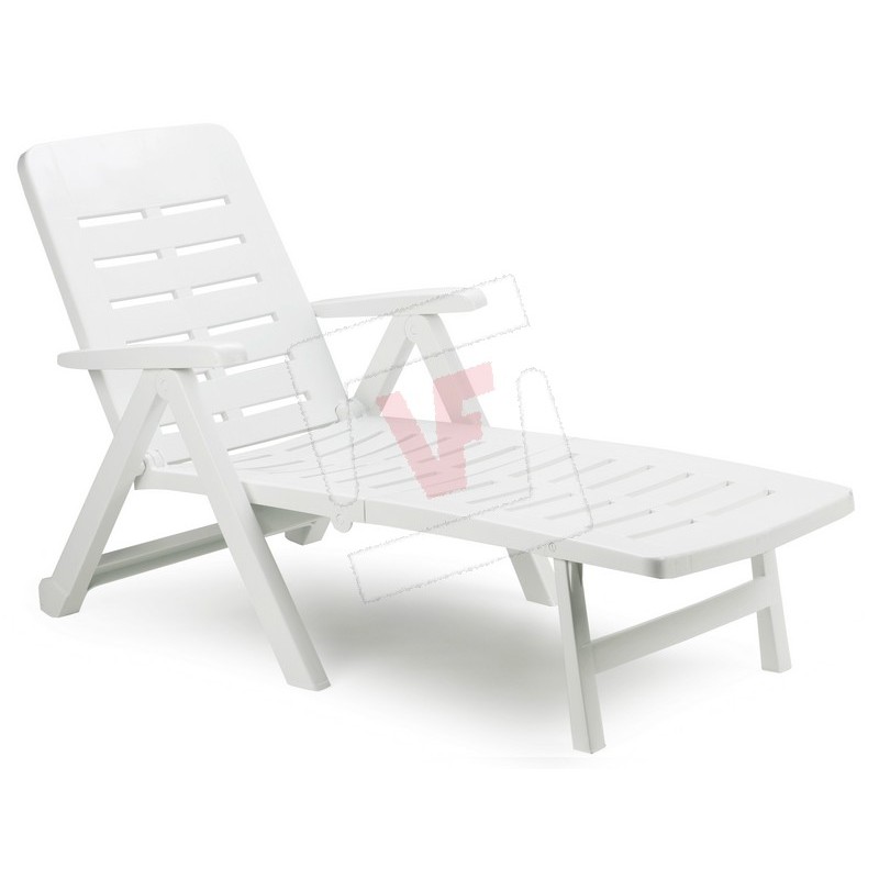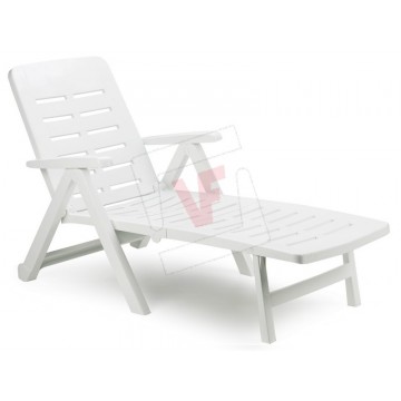 Made of polypropylene, resistant and long-lasting, adjustable backrest, with wheels for transport.