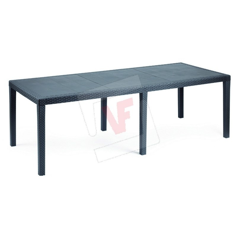 In rattan effect polypropylene with anti-scratch film, resistant and long-lasting, stackable and extensible, with smooth top.