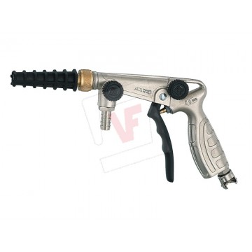 Nickel-plated aluminum body, adjustable nozzle, scratch-resistant rubber tip, liquid flow and air consumption regulator.
