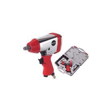 With 1/2 square drive, reversible, 3-position adjustable torque, non-slip handle. Supplied with: case, set of 10 sockets, extension, quick coupling, service wrench, oil bottle.