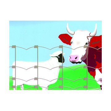 Made of galvanized steel wire, high resistance to atmospheric agents, flexible and robust, ideal for fencing large breeding areas, meshes knotted at progressive heights.