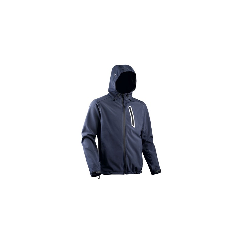 In "Softshell" elastic polyester, internal fleece padding, special windproof membrane, zip closure, adjustable hood and cuffs, 3 front pockets, reflective details.