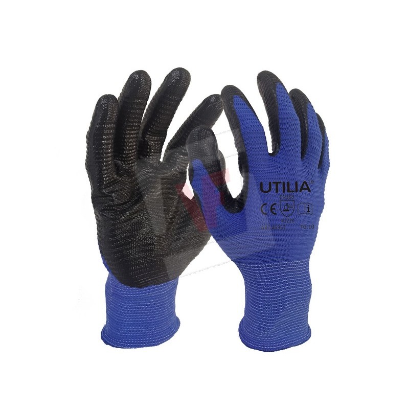 46951 | Utilia NYLON/NITRILE GLOVES Col. Blue/black size 10 ||Utilia |