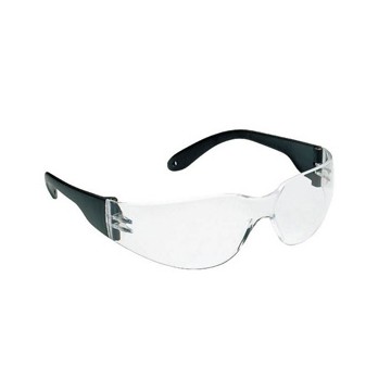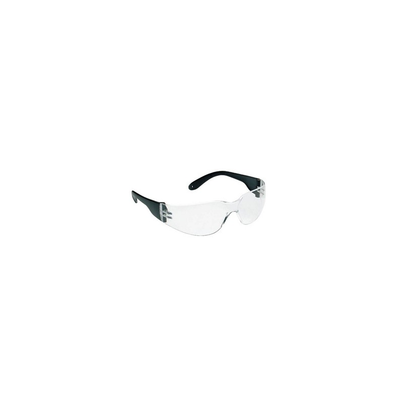Universal professional monobloc glasses, scratch-resistant transparent polycarbonate lenses, fixed black temples, wrap-around model.