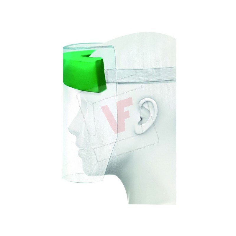 In transparent PVC, with foam rubber for a perfect fit on the forehead. It can be sanitized and reused. European Category 1 certification.