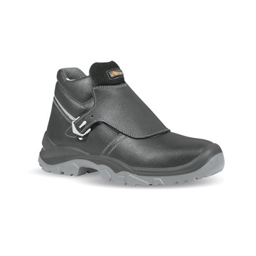 Water-repellent upper in printed leather, breathable lining, abrasion-resistant PU foam/compact PU sole, steel toe cap and midsole. Antistatic, energy absorption in the heel, resistance to hydrocarbons. Ideal for welders.
