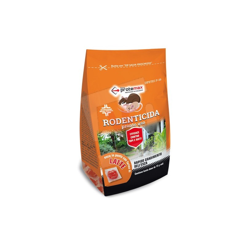 Ready to use, enriched with enticing substances, particularly effective against rats and house mice. Suitable for civil environments, gardens, stables, warehouses, basements.