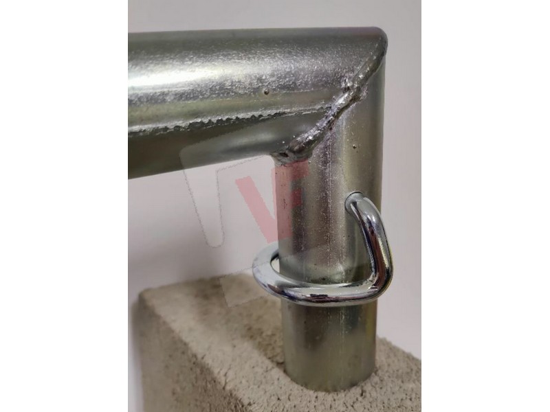 In acciaio, indicato per la messa in sicurezza di cavalletti e prolunghe per ponteggi.